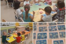Сегодня мы с воспитанниками средней группы набрали полную корзину грибов. С детьми научились срезать уголки квадрата, закругляя их. Это у нас коллективная работа. Постарались все.
