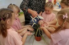 Главным символом стала вода-как источник жизни и символ памяти.Дети с большим трепетом и осознанием важности момента полили из ладошек цветы,символически поделившись с ними ,,каплей жизни"и чистой водой ,которой так не хватало людям в те страшные дни.