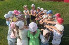 В детском саду отмечается День дружбы. Он посвящается укреплению дружеских отношений между детьми, воспитанию доброжелательности и умения взаимодействовать друг с другом. После завтрака были обсуждения, что такое дружба, какие качества важны для друзей, как правильно вести себя в конфликтных ситуациях, что значит "уметь дружить".