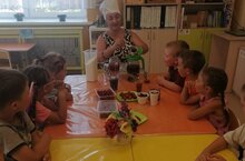 Балалар, кичтән әти-әниләре белән бергәләп җыйган җиләкләрне, иртән бакчага алып килделәр. Бергәләп, нишләтсәк тәмлерәк буласын уйлашкан, әниләр ничек ясаганын сөйләшкәннән соң, без дә җиләкләрне изеп, шикәр комы белән бутап тәмнүшкә һәм җимеш компоты әзерләргә булдык.
