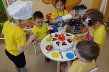 Игры с игрушечной кухней улучшает когнитивные способности и формирует навык решения проблем. У детей возникает возможность побывать в различных ролях, от шеф-повара до хозяйки, сочиняя разнообразные сценарии. Во время игры дети сервируют стол посудой и приборами, а поварята готовят обед.
