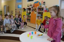 Дети с удовольствием играют в развивающую игру "Сортер". Она развивает усидчивость, логическое мышление, координацию движений рук, зрительное внимание и память. Играя с сортером, ребенок знакомится с цветами, учится их соотносить и называть. Используя пинцет для захвата деталей сортера, ребенок тренирует мелкую моторику, что способствует речевому развитию. Также в процессе игры дети самостоятельно называют цвета.