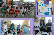 В старшей группе "Сказка" воспитанники прослушали поучительный рассказ воспитателя о круговороте воды в природе«Путешествие Капельки".Дети сами наполнили водой воздушные шарики, сделали капельку Капитошку! Творческая деятельность очень понравилось воспитанникам средних групп- они создали аппликацию «Рыбки в аквариуме», рисовали капелек воды.В подготовительных группах в режимных моментах воспитанники повторили подвижные игры: «Ручеек», «Море волнуется раз...».В приемных комнатах воспитатели организовали работу с родителями, выставлены консультации: «Берегите воду — сохраните планету!», «Чистый кран» (фотоотчет, как дети дома экономят воду)
