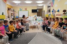 Мы с детьми старшей группы проводили выставку рисунков слушали и читали стихи.