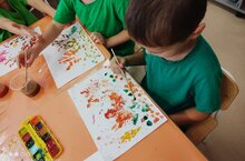 Воспитанники средней группы "Сказка" решили изобразить осенние деревья с помощью техники отпечатывание осенних листьев.Рисовать можно любой краской.