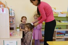 Сегодня в нашей младшей группе "Пчелки" воспитатель вместе с малышами играли в сюжетно- ролевую игру "Парикмахеркая".В процессе игры малыши познакомились с трудом парикмахеров, сформировали умения применять в игре полученные ранее знания об окружающем мире. Воспитатель помогала ребятам развить сюжет игры, распределять роли.