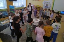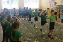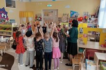 Например, мы с подготовительной группой"Капелька" играли в игру "Двигаемся и говорим", где дети выполняли различные движения и называли их на английском языке.