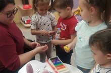 Дети младшей группы "Лучики" играли в игру "В гостях у музыкального сундучка". У них получился оркестр на детских музыкальных инструментах. Ребята научились по-иному воспринимать окружающее, внимательнее относиться к окружающим звукам.