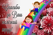 Прекрасно, что появился такой день, когда педагоги и вспомогательный персонал детских садов окружены особой любовью детей, уважением родителей и всеобщим вниманием. Поздравляем вас с профессиональным праздником!Желаем оптимизма,искорки в глазах,креатива и, конечно же,здоровья!
