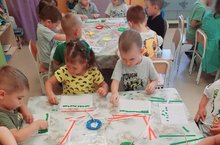 Средняя группа N2. Обрывная аппликация. Тема «Флаг республики родной» .