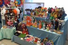 Всё дети любят наряжаться, изображать кого-нибудь. Изготовили платковый театр, сделали маски героев и пришили на платок, он изображает костюм героя. На углах платка сделали крепления для ручек ребёнка. Детям очень понравилось.