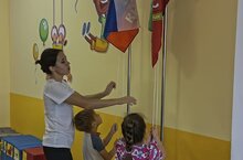Спортивное мероприятие "Богатырские состязания" В нашем детском саду прошло спортивное мероприятие «Богатырские состязания», приуроченное к празднику «День Отца» в средних, старших и подготовительных группах, в которых приняли участие воспитанники нашего детского сада. Праздник начался с прослушивания гимнов РФ и РТ. Потом участники выполнили бодрую разминку "Богатырская наша сила", после которой участники приступили к соревнованиям. В эстафетах: «На рыбалке», «Построй избу», «Далекою тропой», «Помоги товарищу», «Острова дружбы», "Перетягивание каната" воспитанники и их папы проявили свою ловкость, смекалку, чувство товарищества.Также на праздник пришла гостья из сказки Василиса. Она загадывала загадки для ребят и пап. А в конце праздника воспитанники подарили папам песню "Әтиемнең йолдызы мин".
