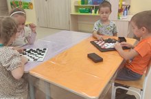 Шашки- интеллектуальная игра, которая стимулирует мыслительную деятельность, развивает пространственное воображение, память и внимание. Воспитанники старшей группы "Радуга" познакомились с игрой в шашки, пробовали свои силы в игре со сверстниками.