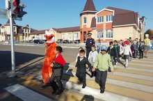 В рамках проведения профилактического мероприятия «Внимание – дети!» члены отряда ЮИД и волонтёры МБОУ «Арская средняя общеобразовательная школа №1 им.В.Ф.Ежкова с УИОП совместно с УГИБДД и ГБУ «БДД» по Арскому району провели акцию «Шагающий автобус» Цель акции : развивать умение первоклассников ориентироваться в дорожной обстановке и понимать значение дорожных знаков, закрепить правила поведения на проезжей части; популяризировать среди детской аудитории светоотражающие элементы; воспитывать в детях ответственность дисциплинированность, культуру поведения на дорогах. Новизна и актуальность мероприятия в том, что в процессе подобной экскурсии дети непосредственно изнутри наблюдают организацию дорожного движения, ощущают себя не объектом воздействия взрослого, а непосредственными и полноправными участниками дорожного движения. В пути следования детей инспектор Муллагалиев Ф.И. и ЮИДовцы с волонтёрами рассказывают детям правила поведения пешеходов, объясняют предназначение дорожных знаков и разметки. Участники акции шли по тротуару, мимо остановочных площадок общественного транспорта, несколько раз пересекали проезжую часть по разным пешеходным переходам, по перекресткам, закрепляя навыки безопасного движения по улично-дорожной сети города. В конце маршрута провели игру, которая позволила проверить уровень адаптации ребенка к безопасному поведению на дорогах. Весь путь первоклассников сопровождала сказочная героиня- Елизавета Патрекеевна, которая напоминала детям о правилах перехода улицы. Начальник ГБУ «БДД» Мухаметзянова Э.Г. подарила первоклассникам световозвращающие элементы и ещё раз напомнила о важности соблюдения ПДД.