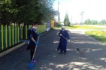 Сегодня провели субботник по очистке принадлежащей и прилегающей территории МБУ ДО "Новокинерский Дом детского творчества".