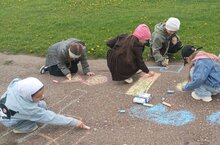 "Акварель" түгәрәге әгъзалары саф һавада асфальтта ирекле темага рәсем ясадылар. Балалар үз фантазияләрен күрсәттеләр. Түгәрәк җитәкчесе Бакиева Ә.Т.