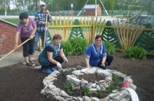 Территорияне яшелләндерү һәм чистарту буенча өмә үткәрелде. Җирләр казыдык, клумбаларга чәчәкләр утырттык.