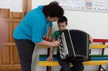 В честь Международного дня родного языка - 21 февраля, педагог дополнительного образования детей Султанова Г.Р. учила обучающихся, занимающихся в объединении "Баян" играть песню "Туган тел" на бане.