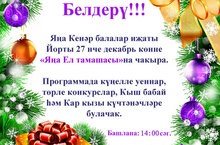 27 нче декабрь көнне түгәрәкләргә йөрүче балалар өчен әкият геройлары, Кыш Бабай һәм Кар Кызы катнашында Яңа ел бәйрәме булып узды. Үзенчәлекле матур театральләштерелгән тамашада балалар бик актив катнаштылар. Бәйрәм күңелле уеннар, биюләр, җырлар белән үрелеп барды.