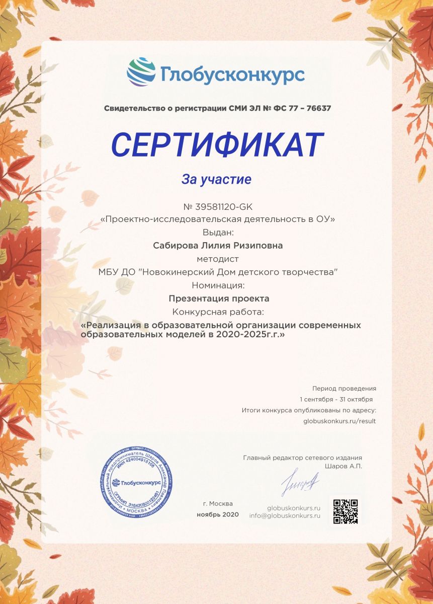 | Руководитель: | Камалиева Гульчачак Мансуровна |