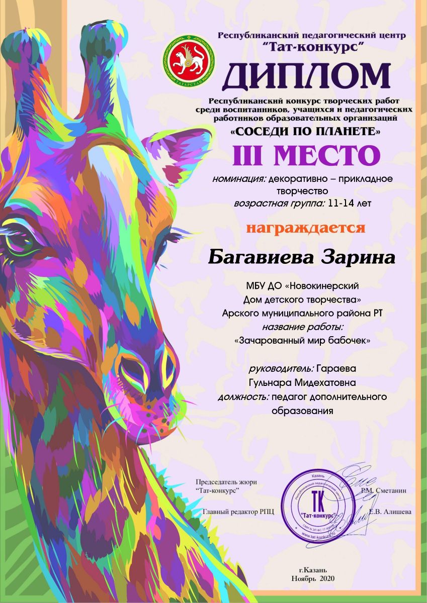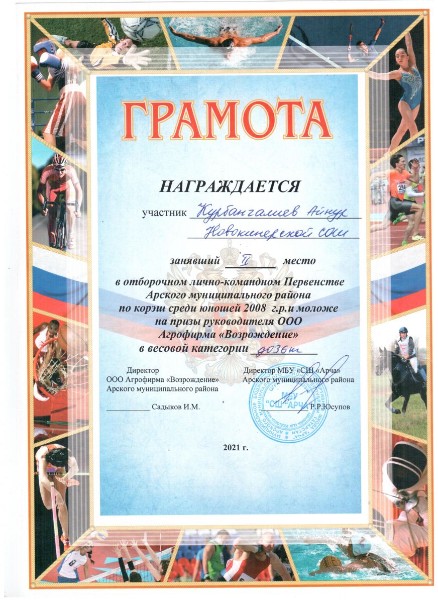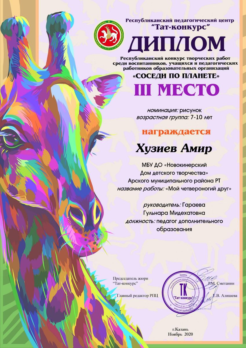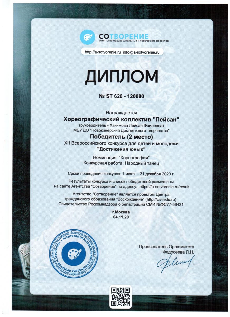 Диплом лауреата районного молодежного конкурса-фестиваля эстрадного искусства "Арча Йолдызлары 2021"