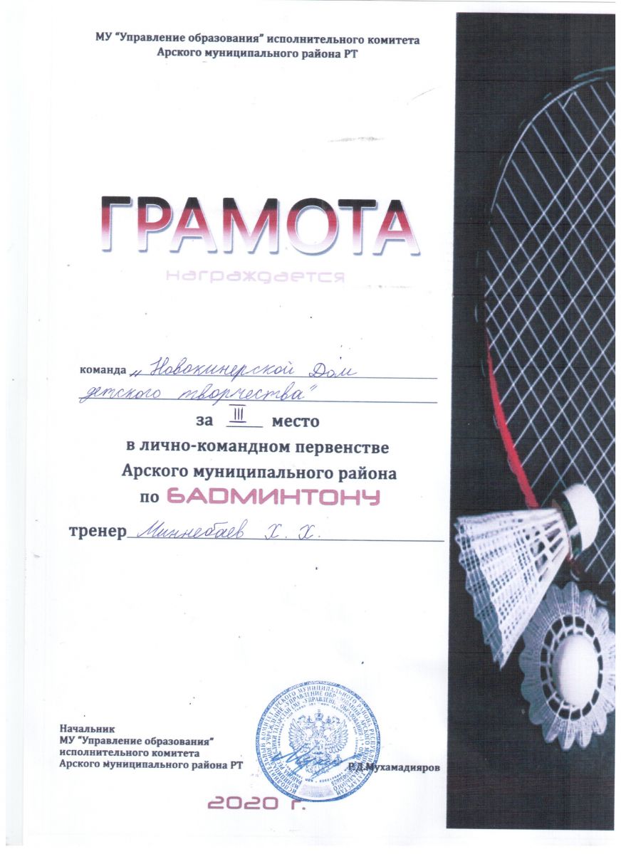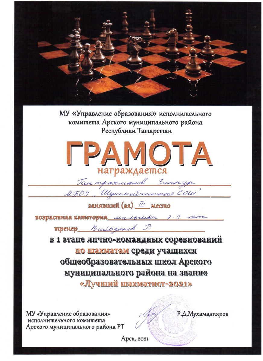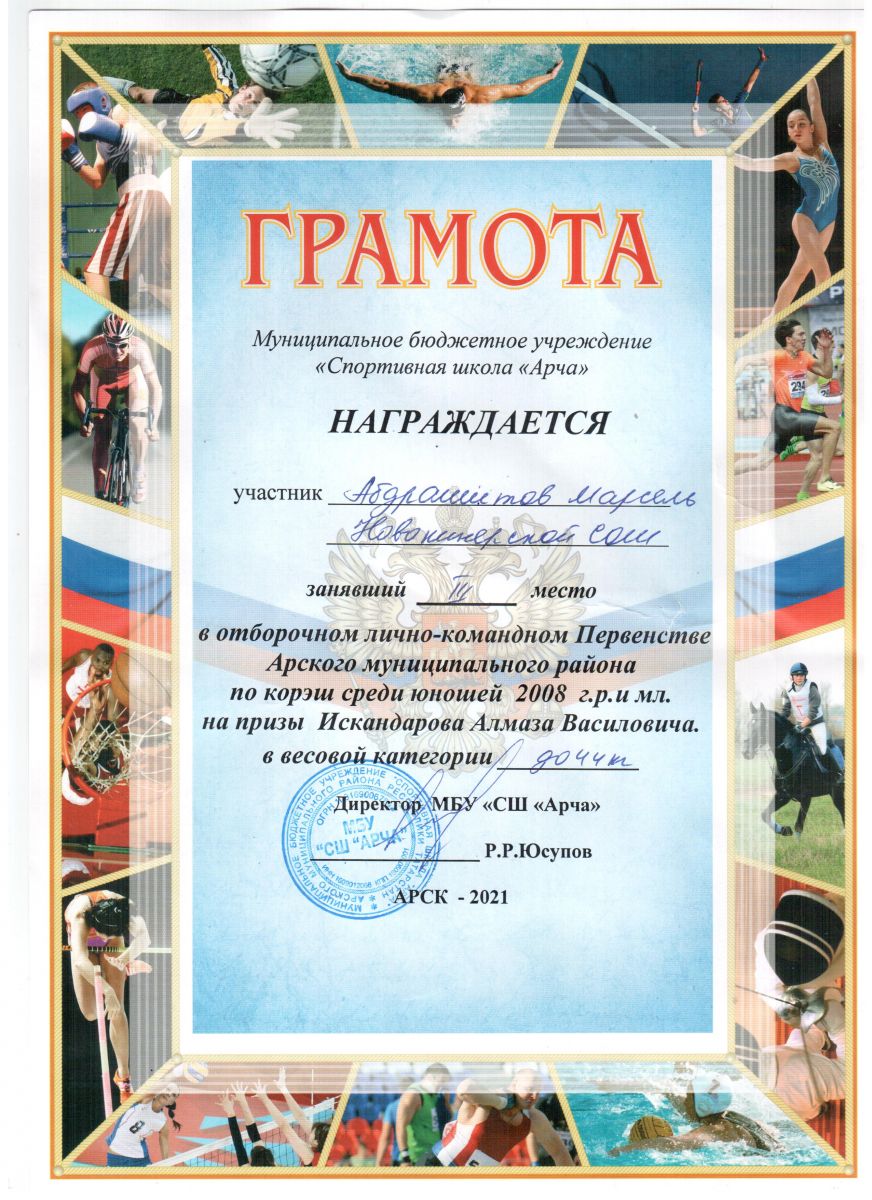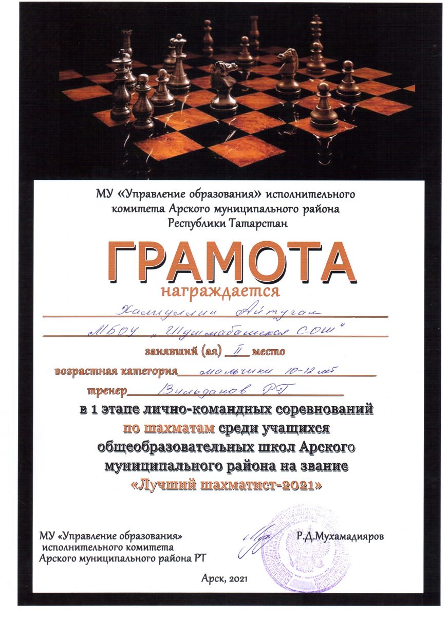 Диплом лауреата районного молодежного конкурса-фестиваля эстрадного искусства "Арча Йолдызлары 2021"