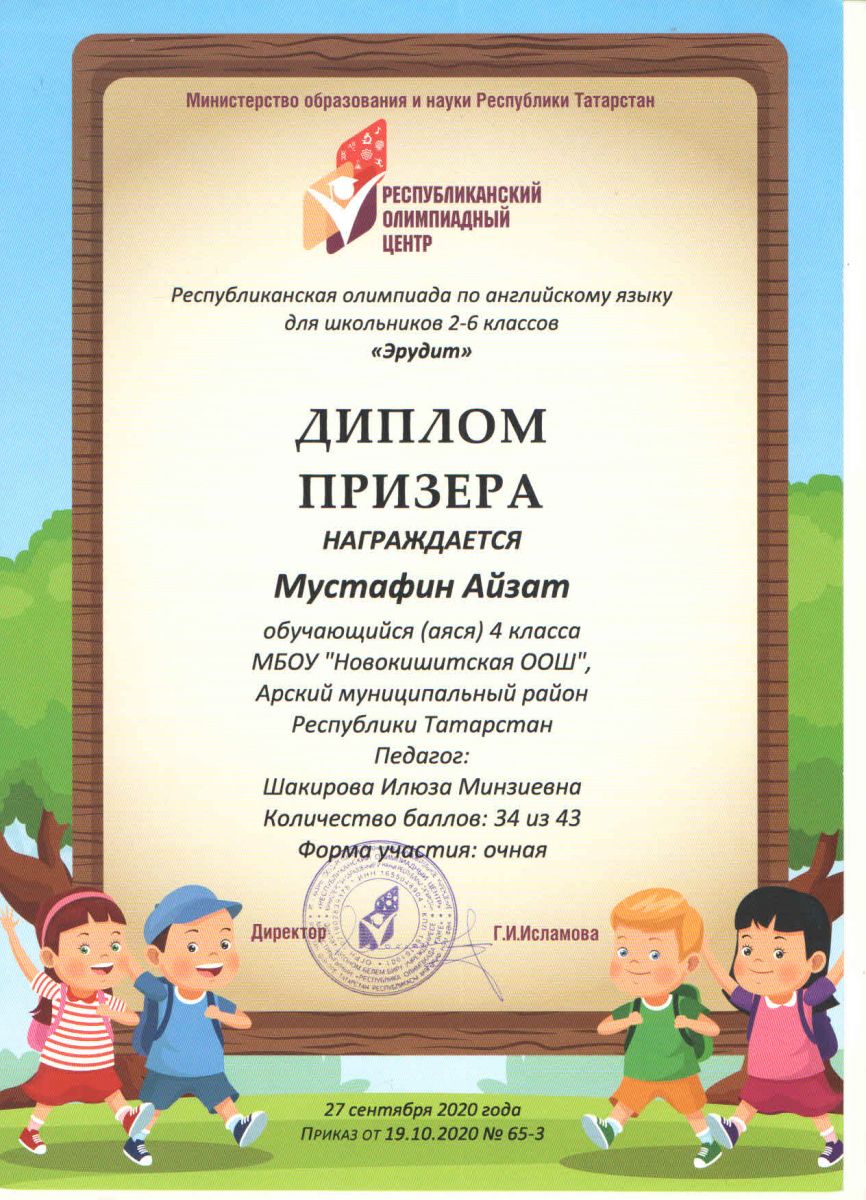 Диплом победителя - "Олимпийские игры по английскому языку"