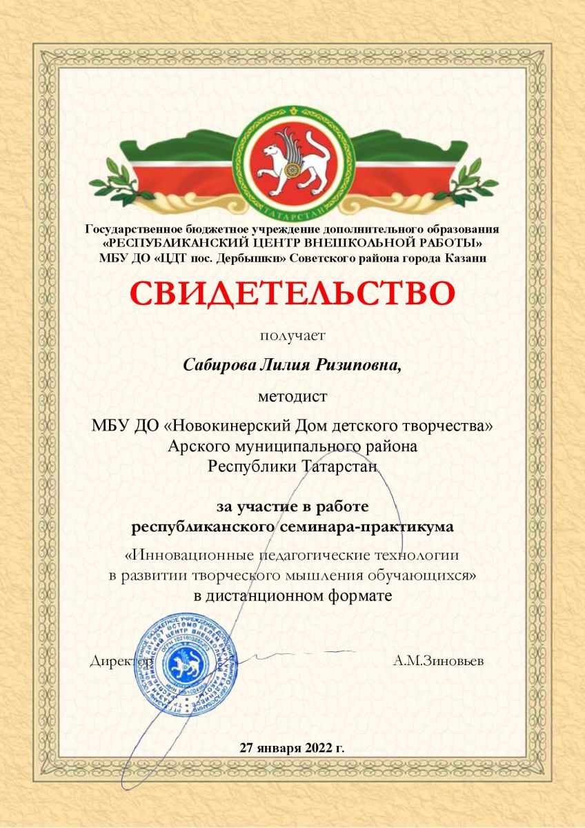 Муниципальное бюджетное учреждение дополнительного образования «Новокинерский Дом детского творчества" Арского муниципального района Республики Татарстан/Татарстан Республикасы Арча районы "Яна Кенәр балалар иҗаты Йорты" өстәмә белем муниципаль бюджет учреждениесе