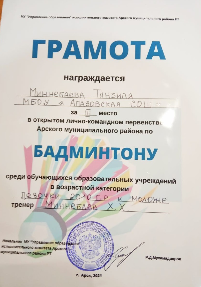 3 место по бадминтону (команда)