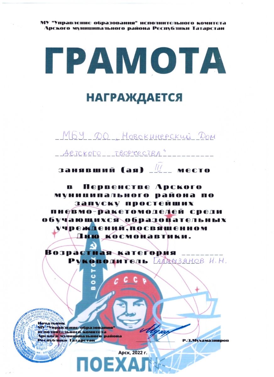3 место в Первенстве по запуску простейших пневмо-ракетомоделей