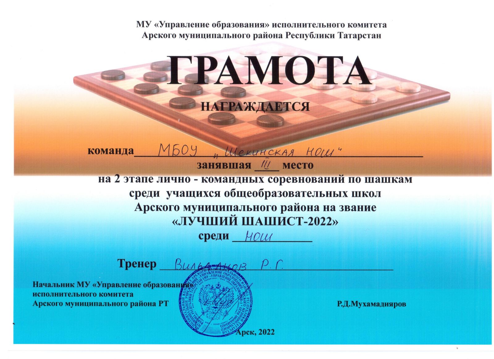 3 место - "Лучший шашист-2022" (команда)
