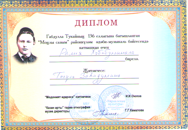 Диплом лауреата 1 степени - "Мөнәҗәтләр-рухи мирасыбыз"