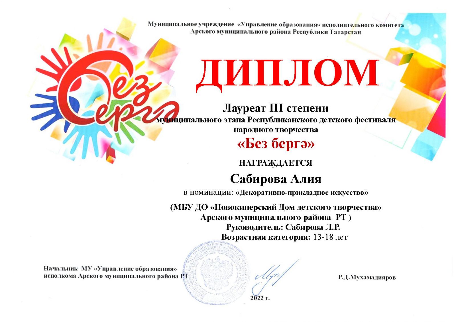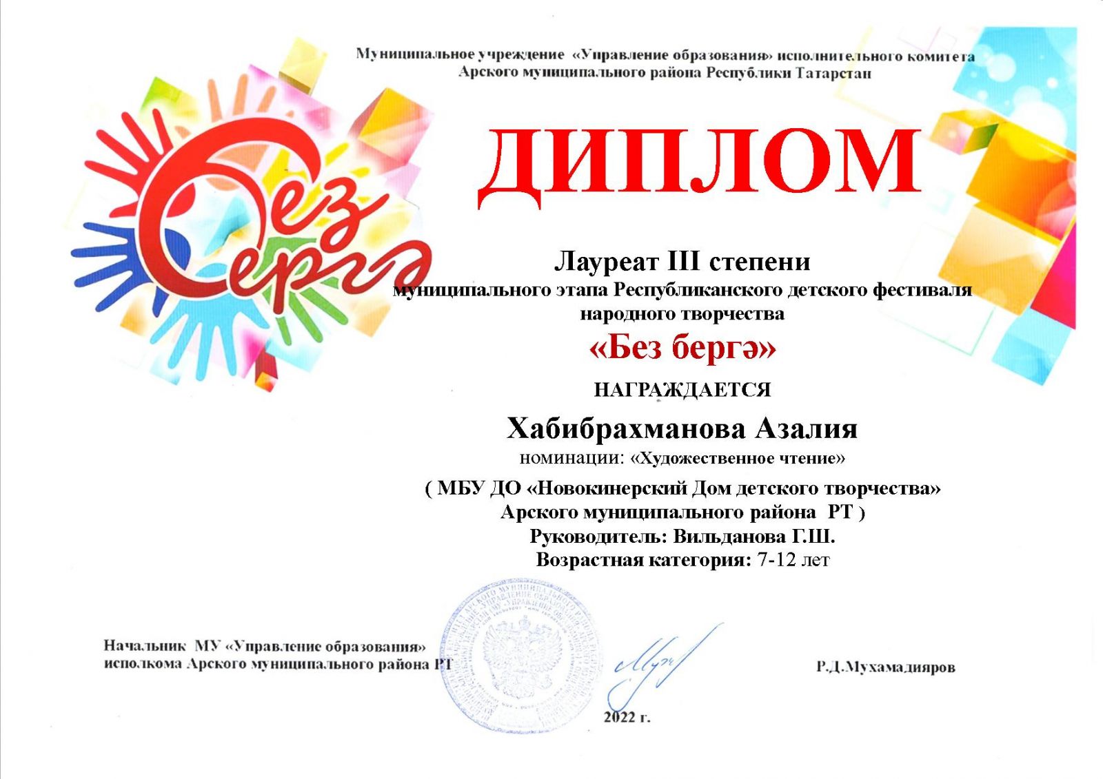 Диплом лауреата 3 степени - "Без бергә"