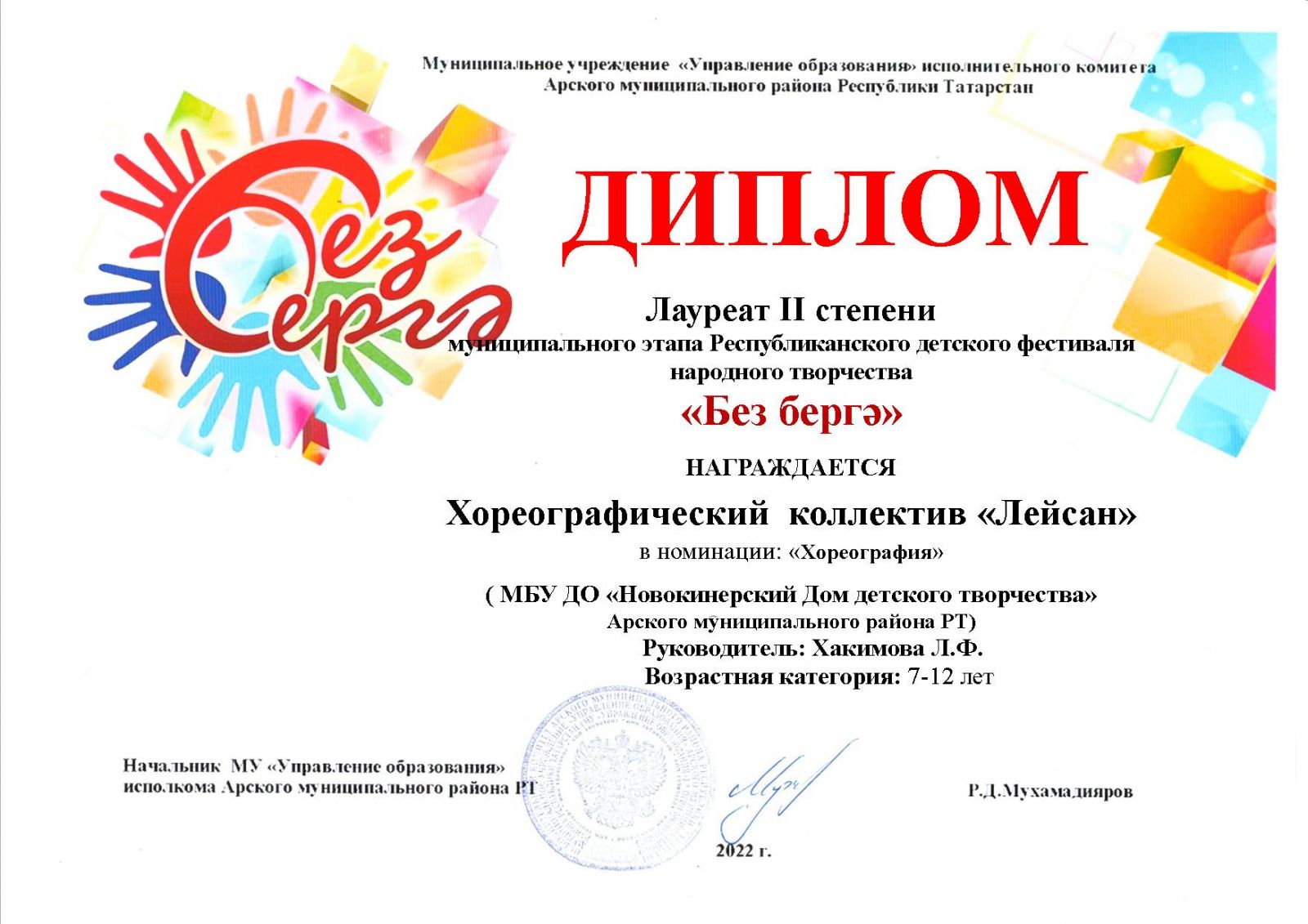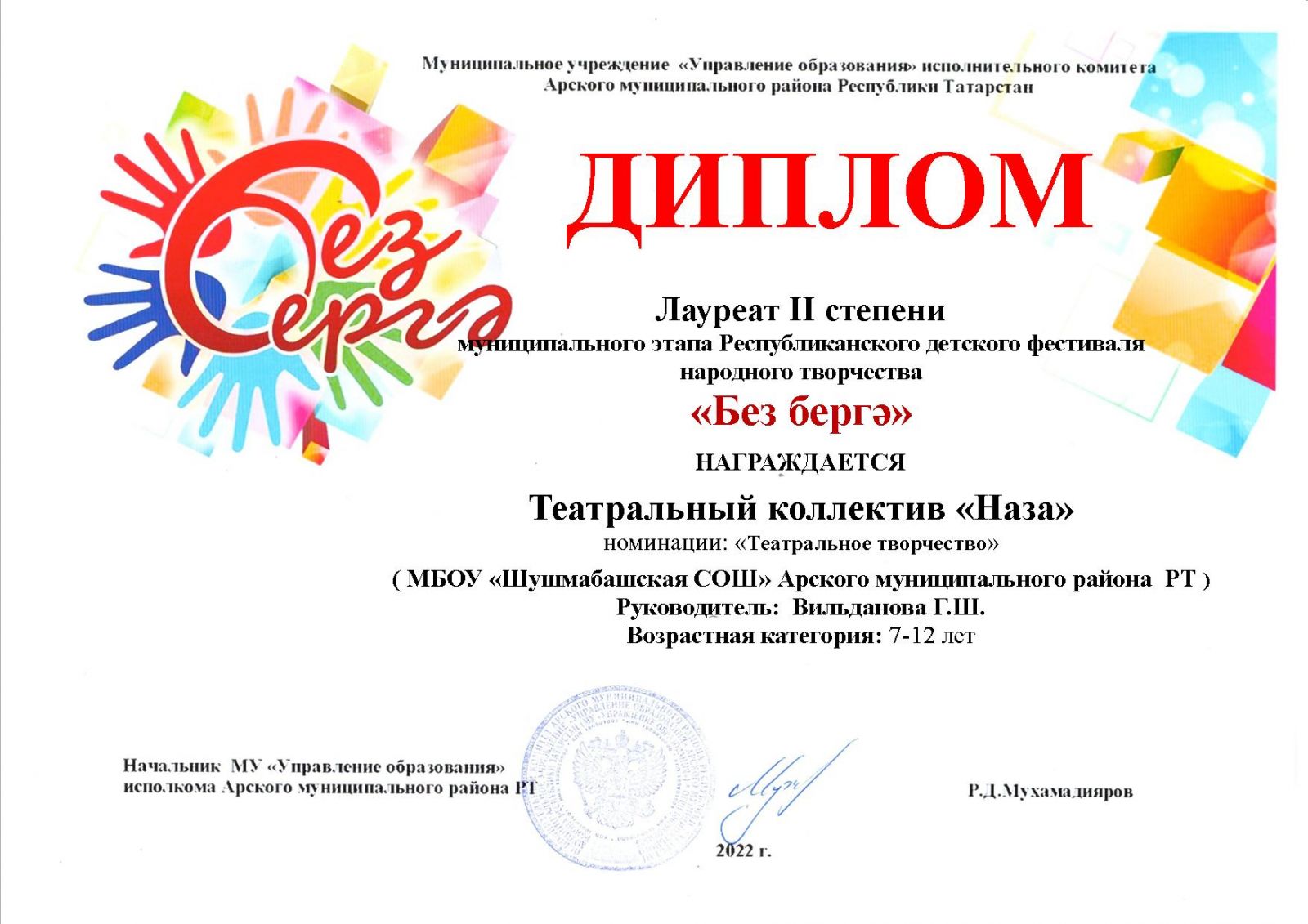 Диплом лауреата 2 степени - "Без бергә" (коллектив)