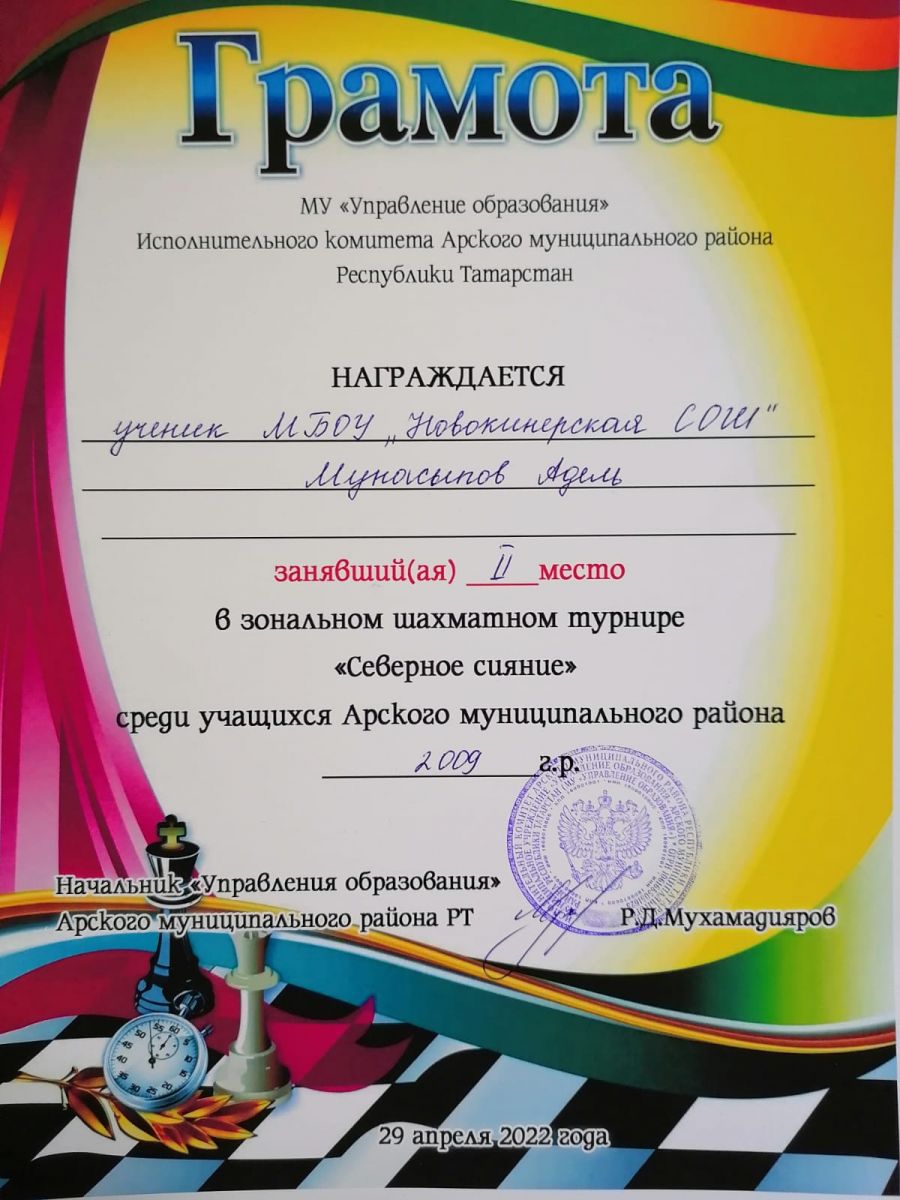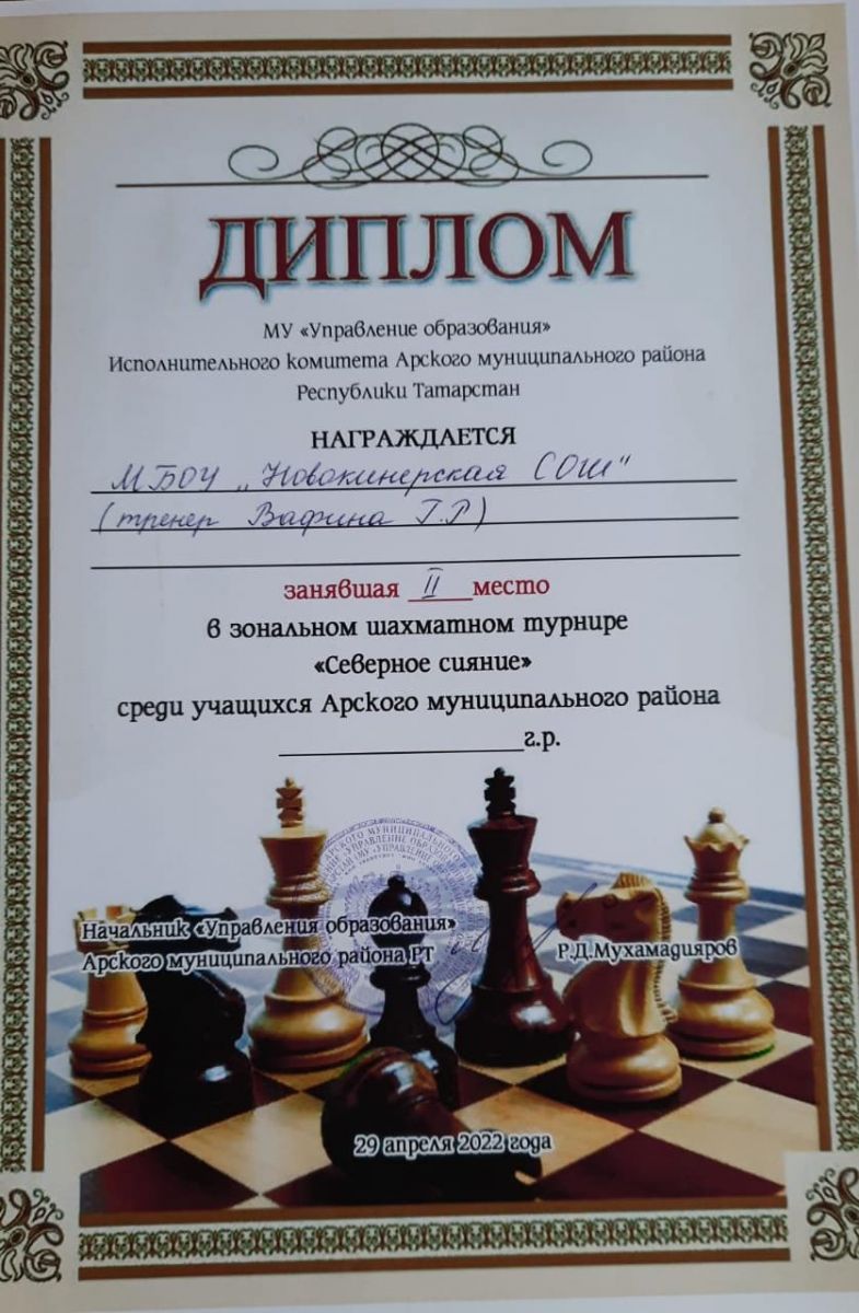 2 место - "Лучший шахматист-2022"