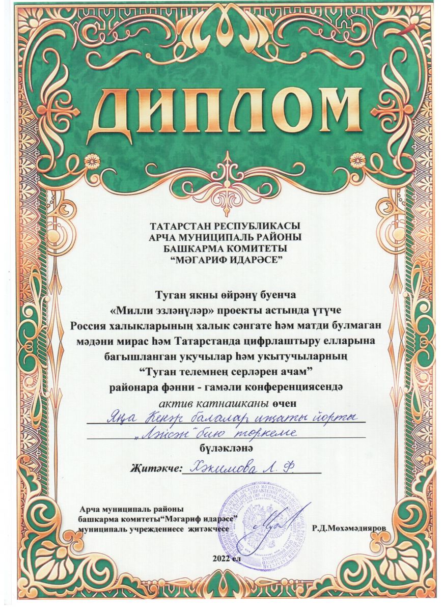 Муниципальное бюджетное учреждение дополнительного образования «Новокинерский Дом детского творчества" Арского муниципального района Республики Татарстан/Татарстан Республикасы Арча районы "Яна Кенәр балалар иҗаты Йорты" өстәмә белем муниципаль бюджет учреждениесе