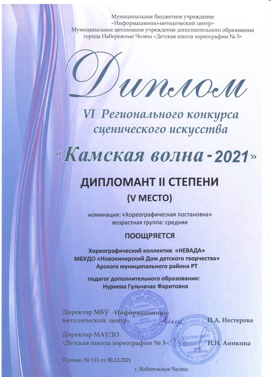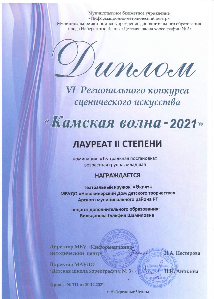 Диплом дипломанта 2 степени - "Камская волна 2021" (коллектив)