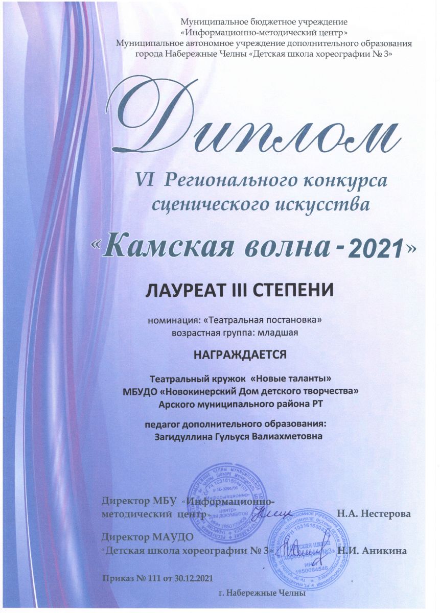 Диплом лауреата 3 степени - "Камская волна 2021" (коллектив)