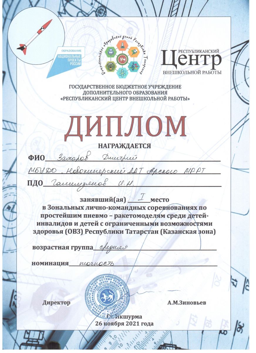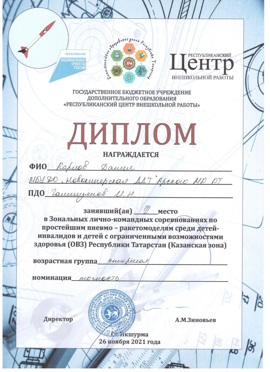 1 место- Соревнования по простейшим пневмо-ракетомоделям