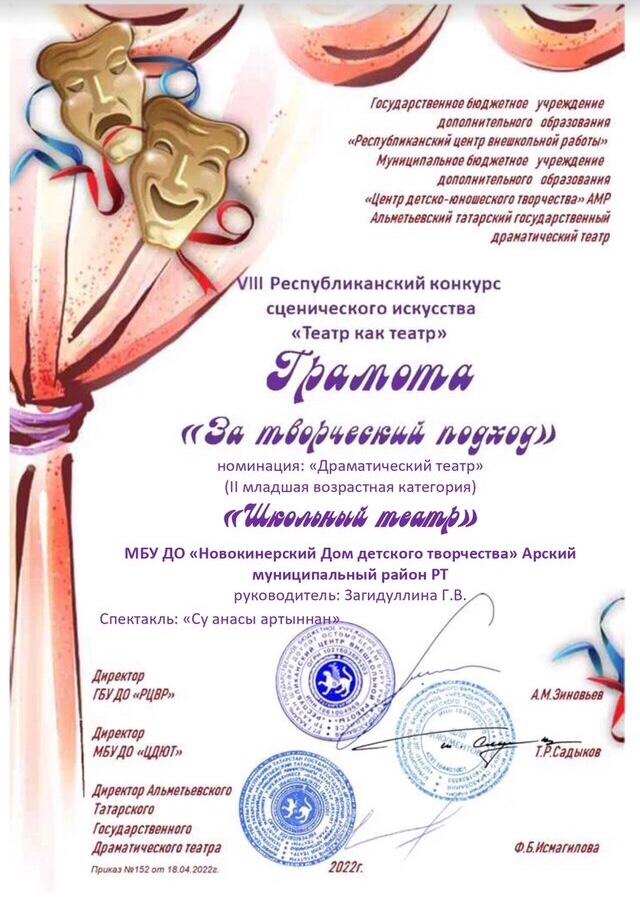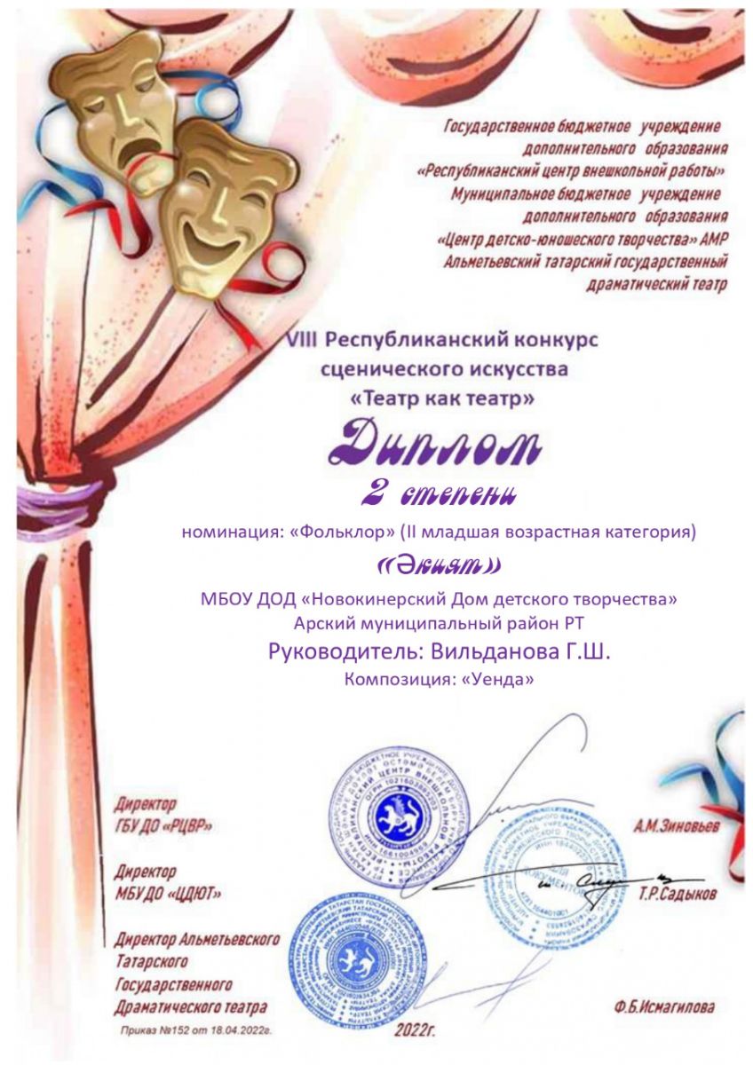 Муниципальное бюджетное учреждение дополнительного образования «Новокинерский Дом детского творчества" Арского муниципального района Республики Татарстан/Татарстан Республикасы Арча районы "Яна Кенәр балалар иҗаты Йорты" өстәмә белем муниципаль бюджет учреждениесе
