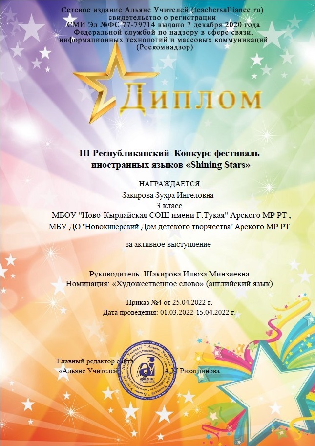 Диплом 1 место - "Shining Stars"