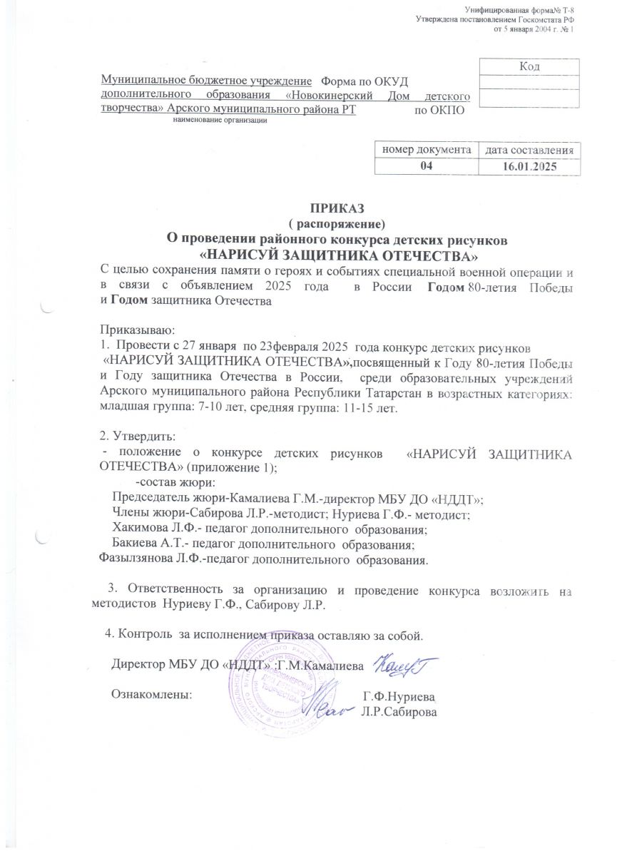 Приказ о проведении районного конкурса "НАРИСУЙ ЗАЩИТНИКА ОТЕЧЕСТВА"