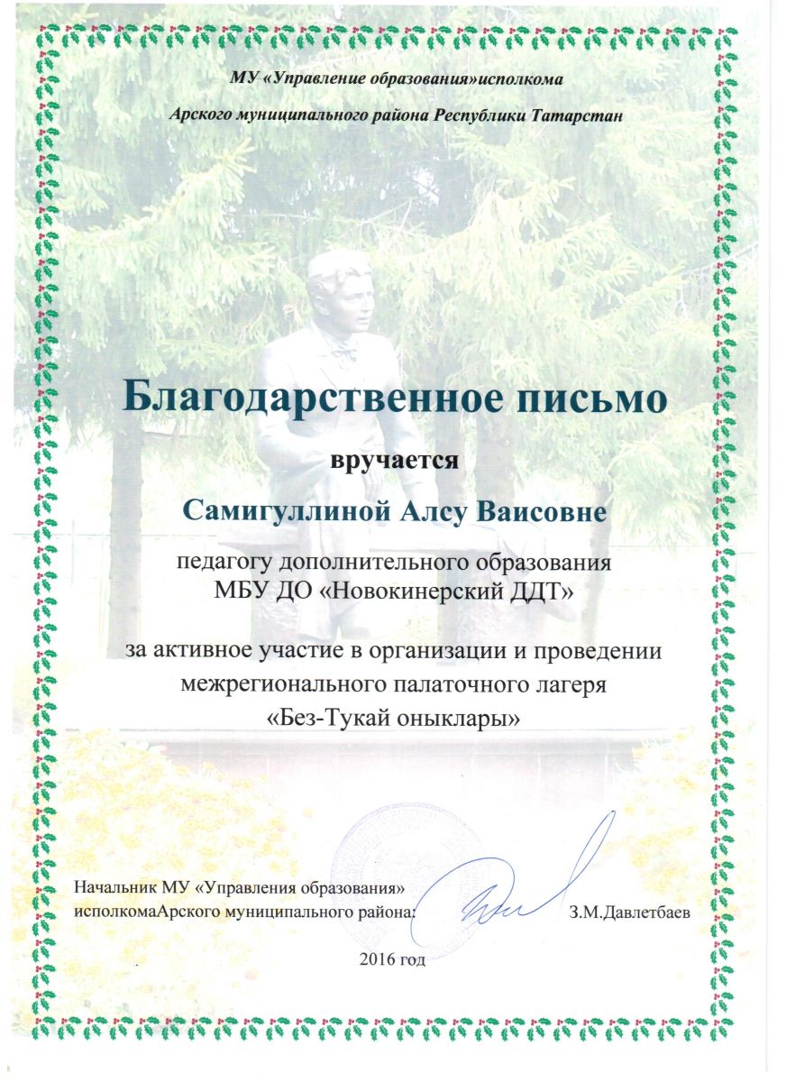 Муниципальное бюджетное учреждение дополнительного образования «Новокинерский Дом детского творчества" Арского муниципального района Республики Татарстан/Татарстан Республикасы Арча районы "Яна Кенәр балалар иҗаты Йорты" өстәмә белем муниципаль бюджет учреждениесе