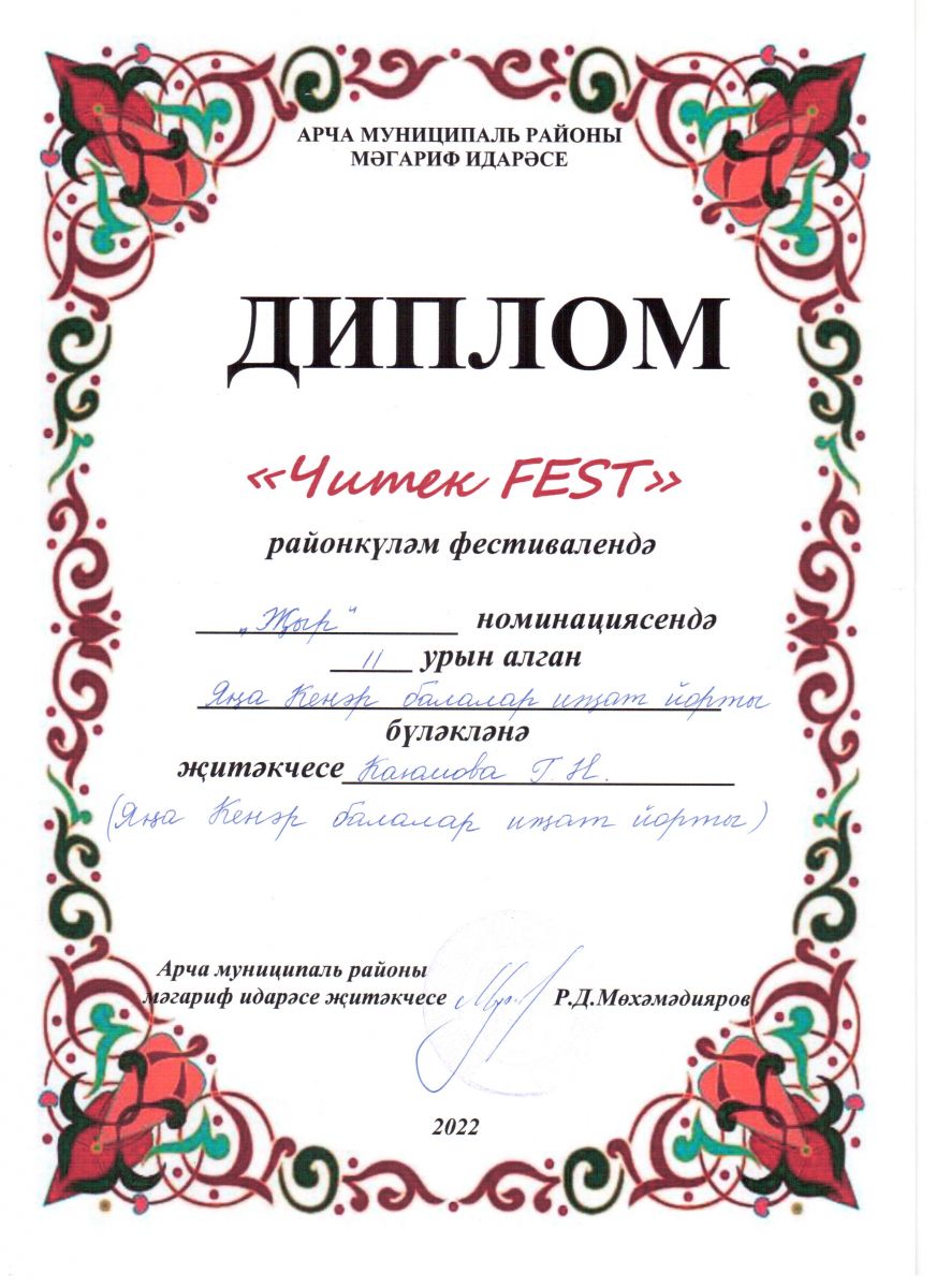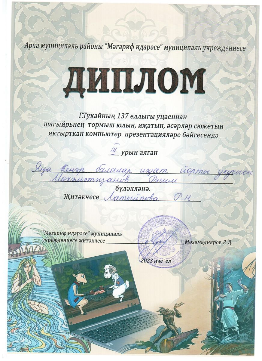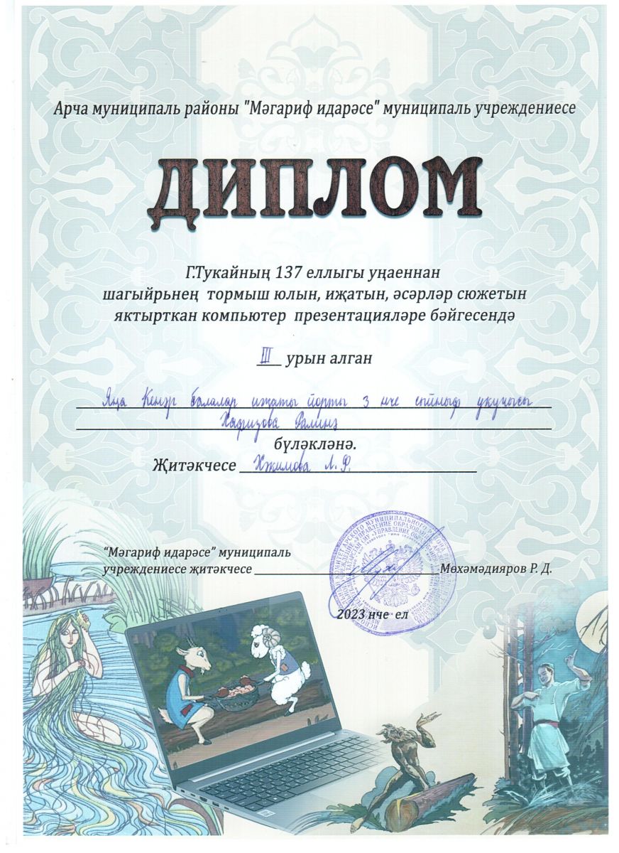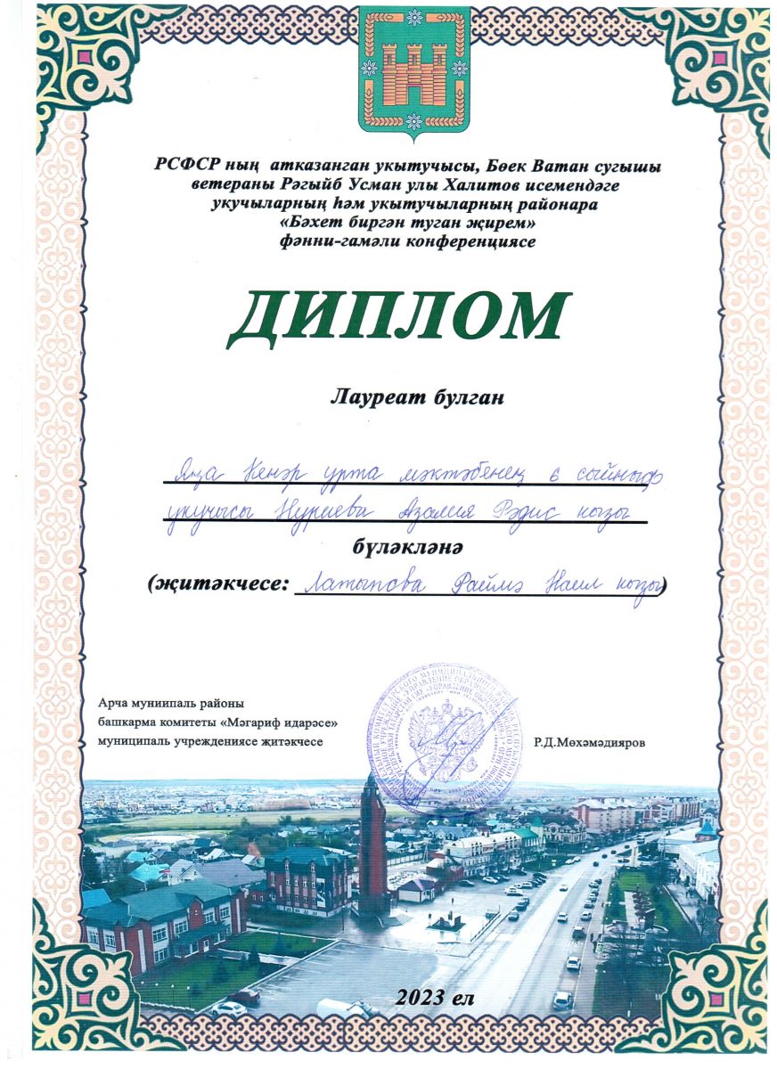 Диплом лауреата - "Бәхет биргән туган җирем"