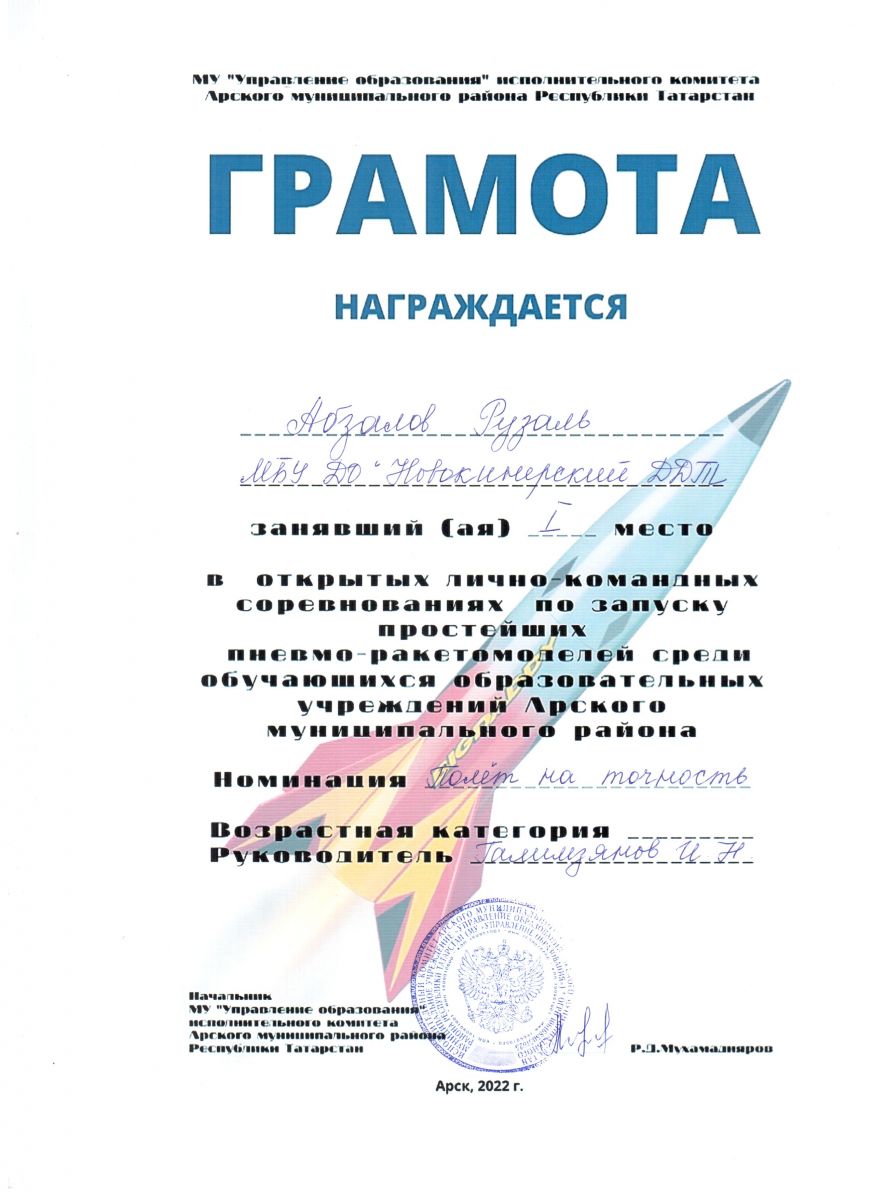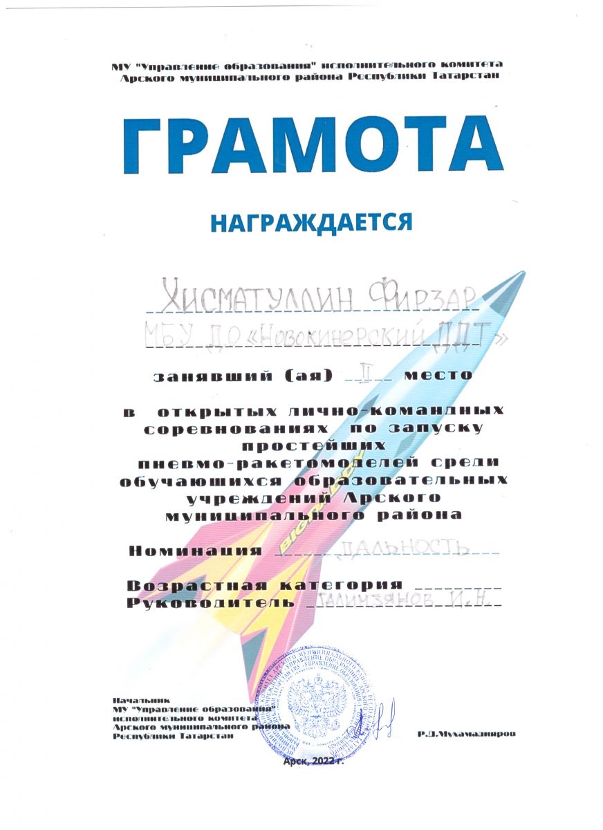 1 место - соревнования по запуску пневмо-ракетомоделей