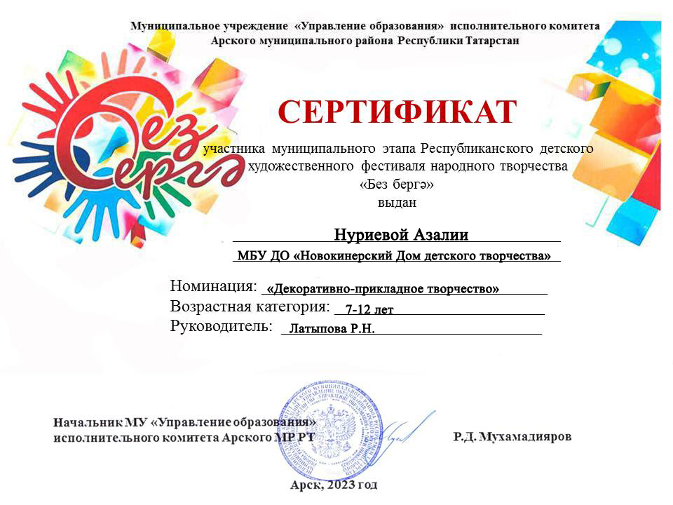 Муниципальное бюджетное учреждение дополнительного образования «Новокинерский Дом детского творчества" Арского муниципального района Республики Татарстан/Татарстан Республикасы Арча районы "Яна Кенәр балалар иҗаты Йорты" өстәмә белем муниципаль бюджет учреждениесе