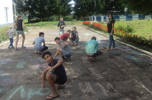 Наше утро началось с рисунков на асфальте...Дети писали свои имена ,делали рисунки,написали ярко и красочно название лагеря и смены ,ну и конечно же,не забыли про своих вожатых и руководителей смены.Всем позитива и доброго солнечного настроения!!!!!