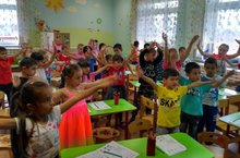 Дети очень любят делать такую зарядку. Дети с радостью повторяют со всеми движения и слова. Занимает такая зарядка немного времени, зато помогает переключить внимание, а так же повторить очередной стишок на английском языке.