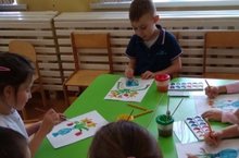 С целью развития у детей творческого воображения, детям подготовительной группы с помощью разных предметов и материалов было предложено нарисовать весенние цветы.
