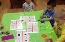 Игру следует начать с самых простых фигур, постепенно усложняя задания. Мы строили из палочек геометрические фигуры, красивые, разноцветные домики. Во время игр с палочками закрепили название фигур и цветов. -